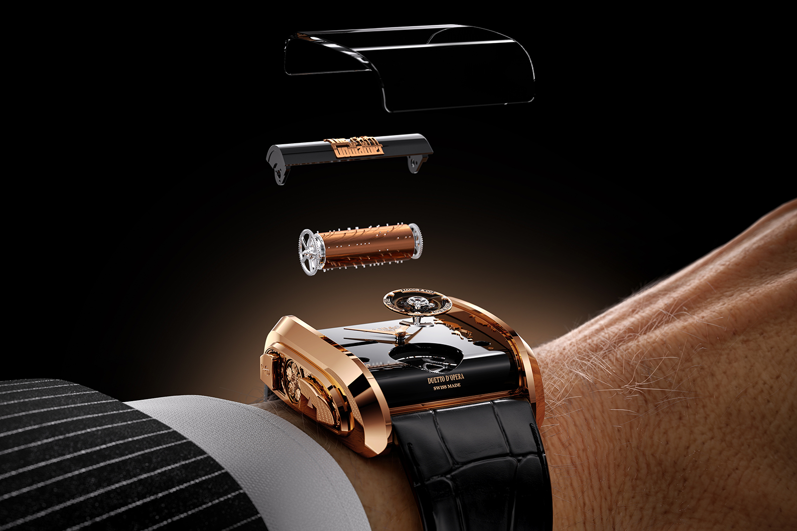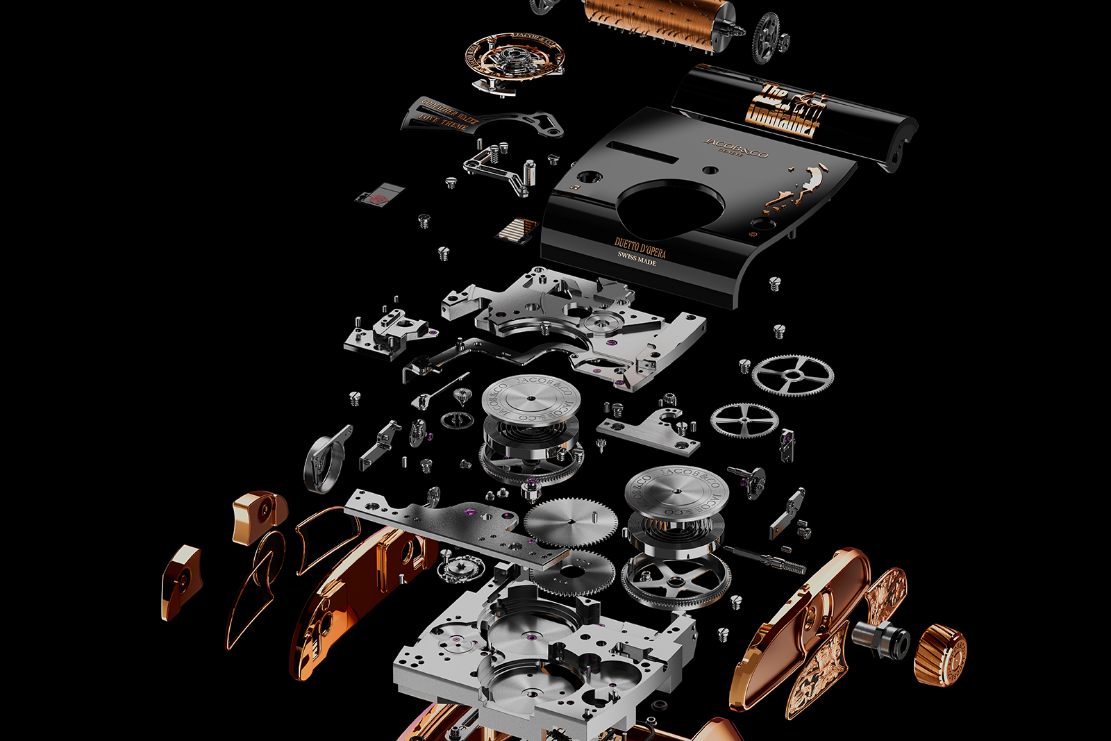 Jacob & Co. revisits a cinema classic with the Godfather II. A sequel to the acclaimed and extravagant Opera Godfather, the new model grounds the movement architecture while doubling down on the musical complication.