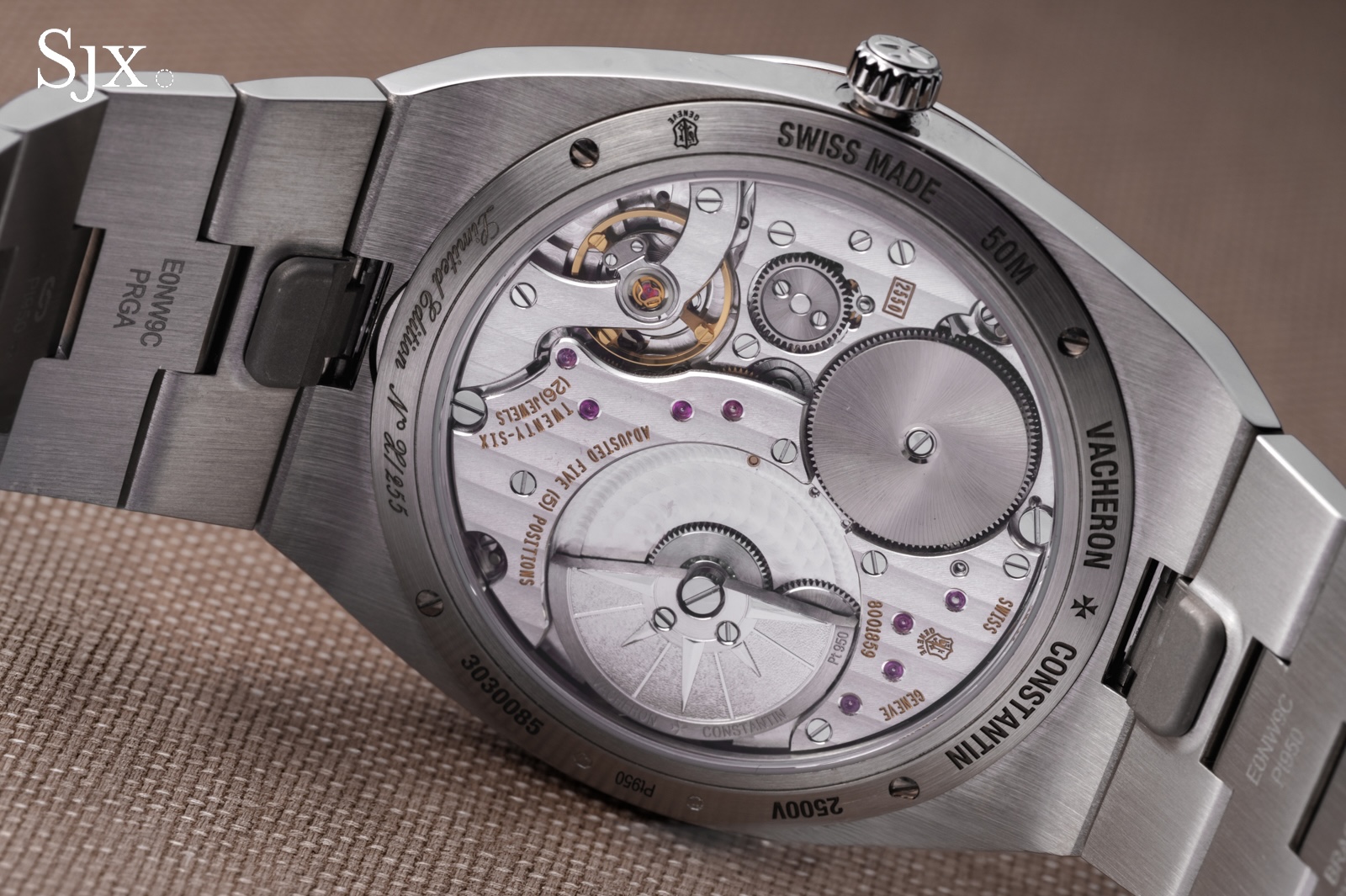 That’s true in another respect as well, since the 950 platinum case of the Overseas is alloyed with copper and gallium rather than ruthenium. According to Vacheron Constantin, this composition makes the case and bracelet 2.7 times more scratch resistant than ordinary 950 platinum.