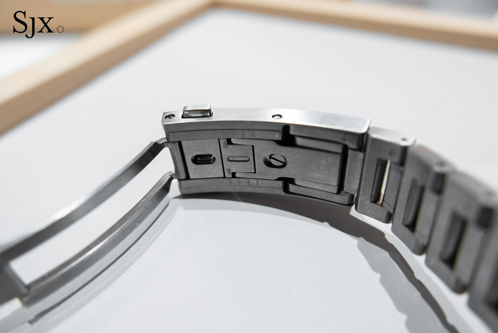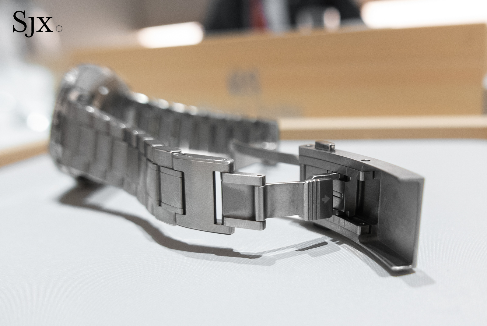 The new security lock deserves extra attention. It is unlocked by sliding the GS emblem down — only then can you use the twin triggers on the side to open the clasp. This arrangement can’t scratch the bracelet like the usual flip-over locking mechanism can.