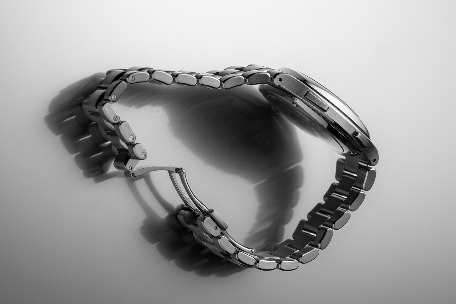 The three-link integrated bracelet draws some inspiration from popular 1970s designs. On paper, the bracelet seems well-built with strong attention to detail evident in its construction. The fully brushed look suits the restrained nature of the watch, and the screwed links are welcome.